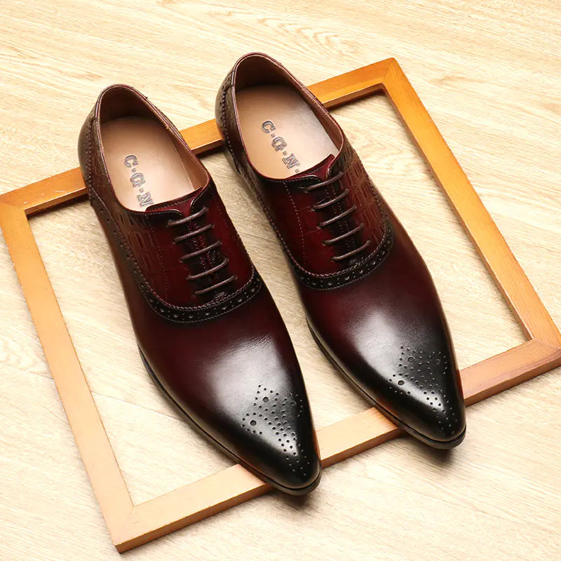 Elevate your style with these exquisite fashion top layer cowhide business leather shoes designed specifically for the modern man who demands the perfect blend of sophisticated elegance and uncompromising comfort in his professional footwear. These exceptional Oxford shoes seamlessly merge timeless sophistication with contemporary comfort technology, creating footwear that adapts effortlessly to your dynamic lifestyle while maintaining the polished appearance essential for professional success. The meticulous craftsmanship and premium materials ensure these shoes become a cornerstone of your refined wardrobe.