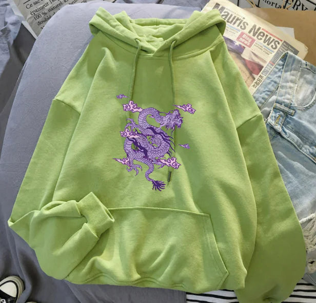 Embrace bold style and cozy comfort with this eye-catching pullover hoodie that features a stunning Purple Dragon cloud print designed to make you stand out during the cooler seasons. Created for the fashion-forward individual who appreciates both artistic expression and comfortable casual wear, this exceptional hoodie combines vibrant graphic design with premium comfort construction. The striking dragon cloud print adds mystical appeal and unique character to your everyday wardrobe, while the loose-fitting silhouette ensures comfortable movement and effortless styling versatility. Whether you're expressing your creative side, staying cozy during casual outings, or simply enjoying relaxed comfort at home, this distinctive hoodie delivers the perfect combination of artistic flair and practical warmth that reflects your individual style and appreciation for standout fashion pieces.