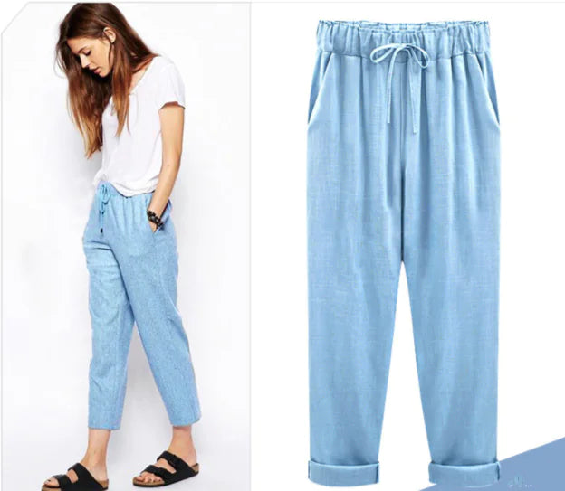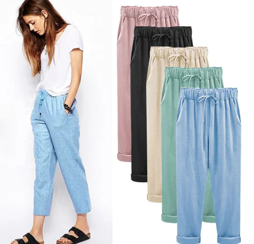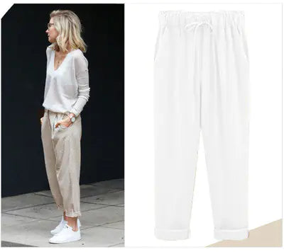 Transform your everyday wardrobe with these sophisticated cotton and linen blend pants that effortlessly bridge the gap between comfort and contemporary style. Designed for the modern woman who values both versatility and elegance, these thoughtfully crafted pants feature a premium fabric composition of 71%-80% cotton that delivers exceptional breathability and all-day comfort. The European and American inspired urban leisure aesthetic brings international sophistication to your casual wardrobe, while the carefully designed silhouette flatters your figure and moves beautifully with your body. Whether you're navigating busy work days, enjoying weekend adventures, or transitioning from day to evening activities, these essential pants provide the perfect foundation for countless outfit combinations while ensuring you always look effortlessly polished and put-together.