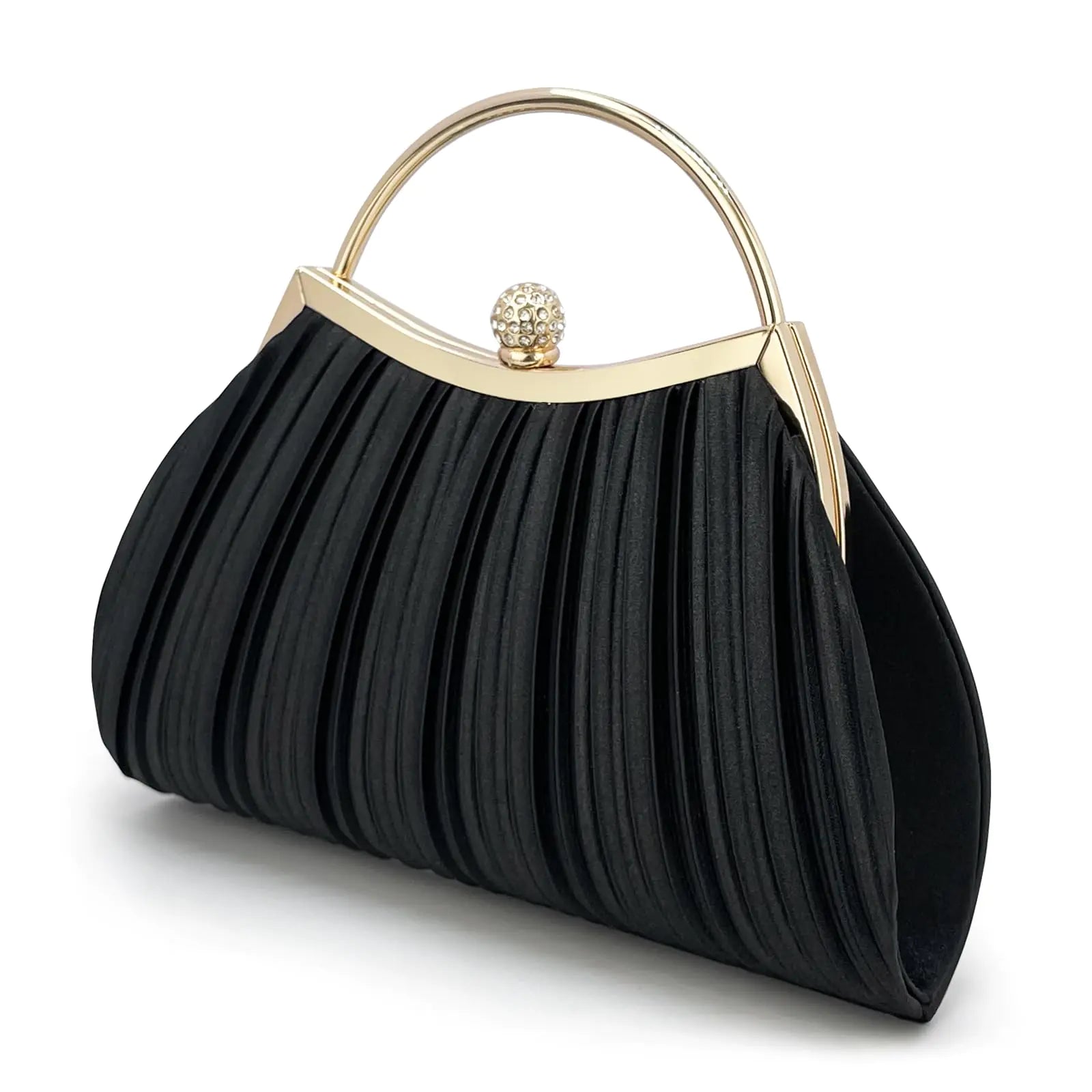 This sophisticated black evening bag with pleated detailing and diamond-encrusted latch is the perfect companion for any occasion. Care Note: Allow 1-2 days air circulation if new bag odor is present. Sizing Note: Please allow 0.2-0.9 inch measurement variance. Professional service team provides quality assurance for your satisfaction.