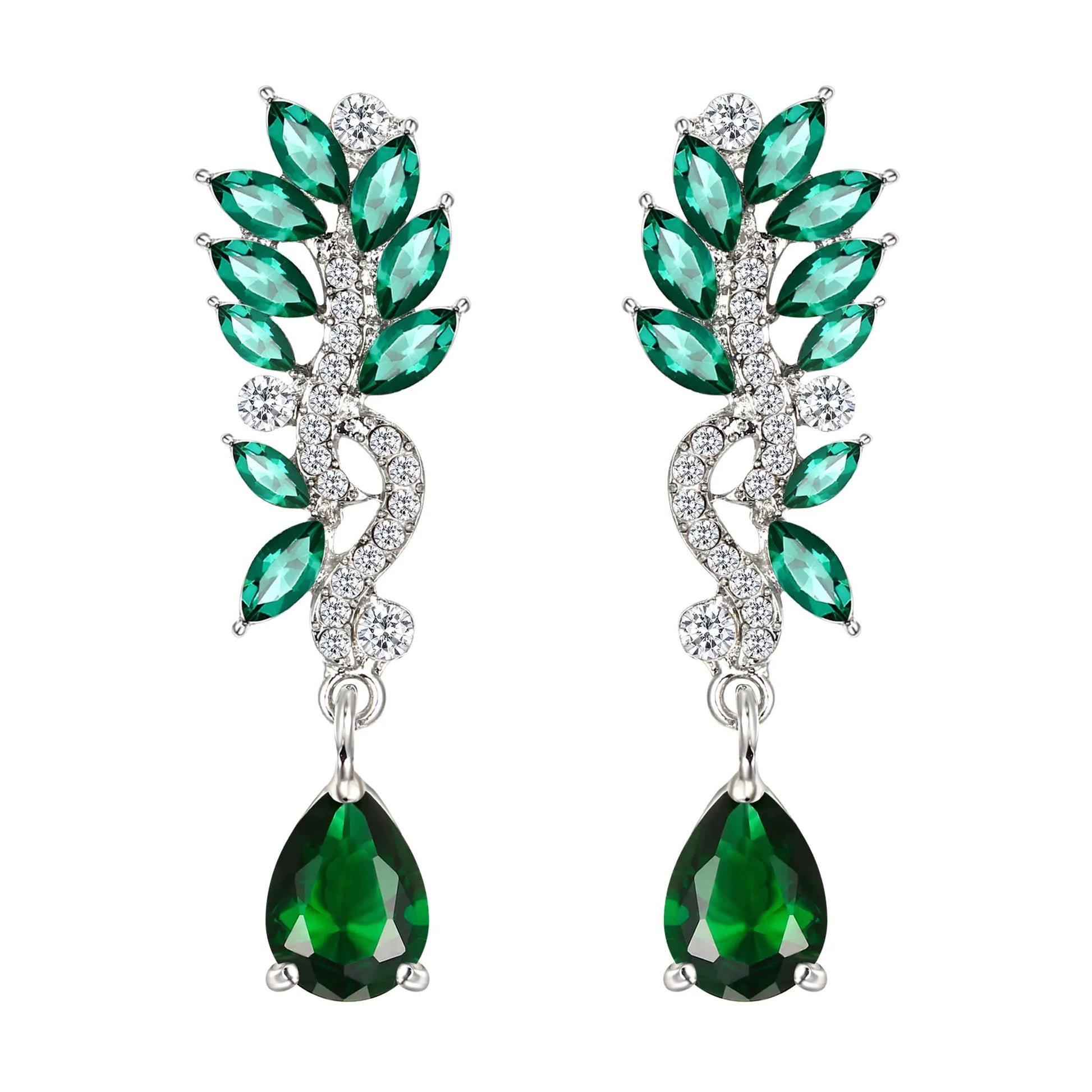Elegant Nature-Inspired Drop Earrings - Emerald Green & Silver Design