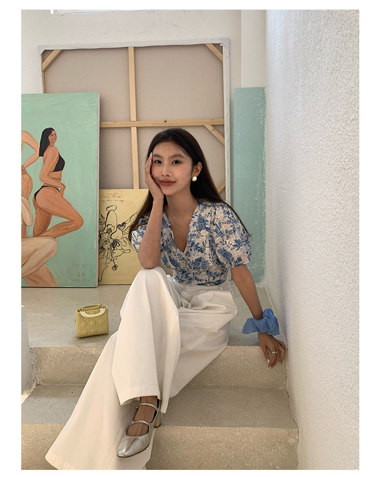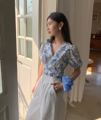 Transform your wardrobe with this exquisite floral chiffon shirt that seamlessly blends European sophistication with contemporary American style sensibilities. Designed for the discerning woman who appreciates the artistry of fine fashion details, this stunning piece features a captivating fragmented floral pattern that brings organic beauty and natural elegance to your everyday styling. The dramatic lantern sleeves create a striking silhouette that commands attention while maintaining graceful femininity, while the thoughtful knot detail adds an unexpected touch of refinement that sets this shirt apart from ordinary pieces. Whether you're curating a professional wardrobe or building a collection of special occasion pieces, this versatile shirt delivers the perfect combination of timeless appeal and modern edge that elevates any ensemble.