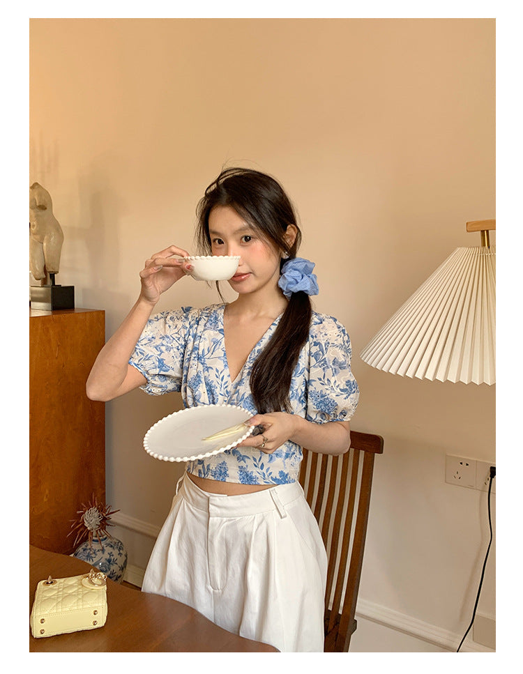 Fit & Comfort Available in sizes S and M to ensure your perfect fit and optimal comfort. The premium cotton construction provides excellent breathability and skin-friendly comfort while the flowing chiffon-style drape creates graceful movement. The lantern sleeves offer comfortable arm freedom while the short length creates flattering proportions that work beautifully with various bottom styles. The thoughtful construction ensures this shirt maintains its elegant appearance through countless wears and styling combinations.