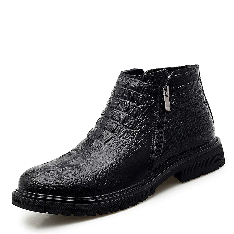 Fit & Comfort The premium crocodile skin leather provides exceptional comfort that improves with wear while maintaining its luxurious appearance and distinctive texture. The convenient side zipper allows for easy on-and-off access while ensuring secure fit during active wear. The comfortable low heel design provides subtle height enhancement without compromising walking stability or comfort. The advanced waterproof technology keeps feet dry while the shock absorption system ensures comfortable walking on various terrains. The heat preservation features maintain warmth during colder conditions while the superior air permeability prevents overheating. The artificial wool insole provides additional cushioning and comfort while the rubber sole ensures excellent grip and traction. Available in comprehensive sizing from 37 to 46, ensuring perfect fit for various foot sizes.