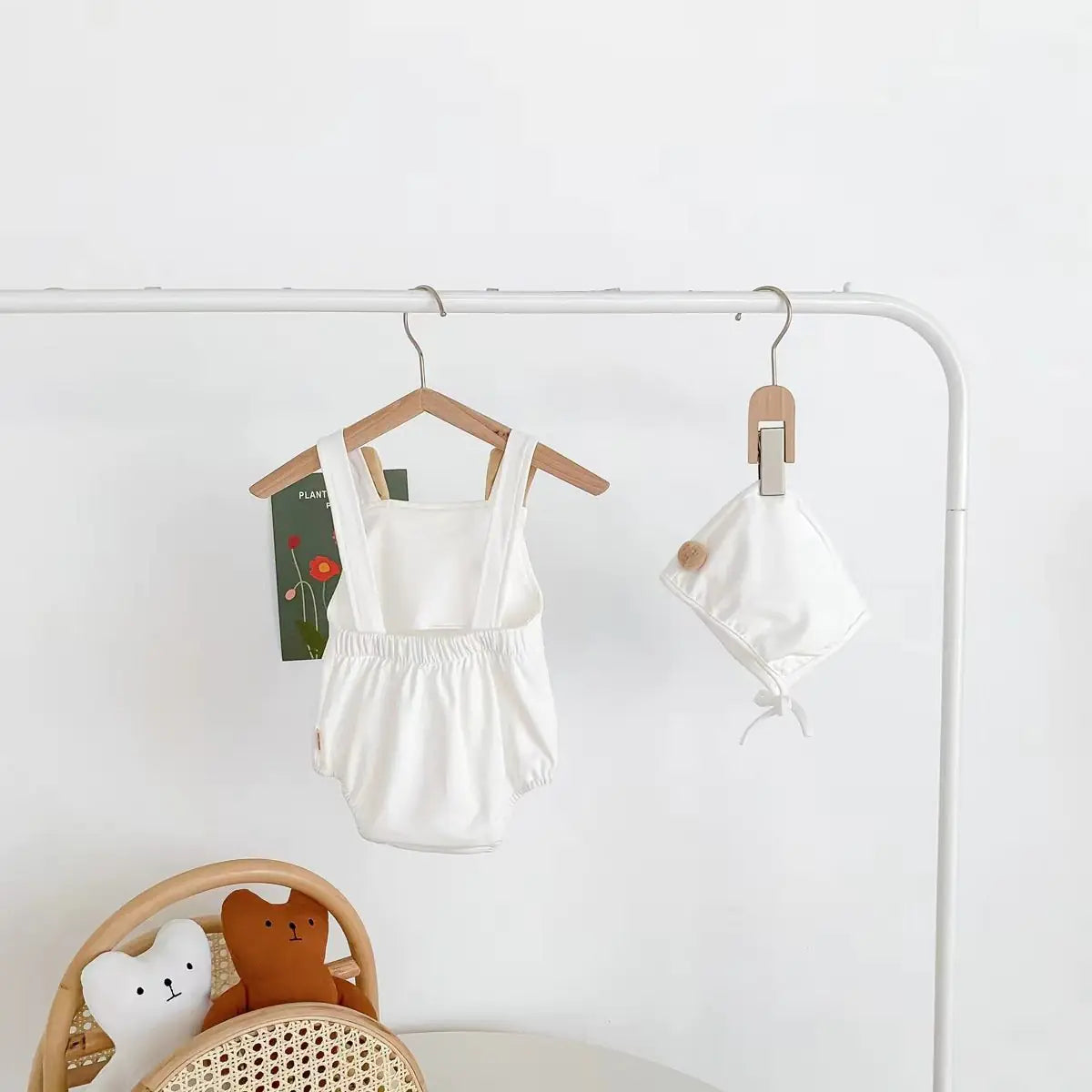 Crafted from soft cotton that offers comfortable fit perfect for all-day wear, the pullover design and sleeveless style make it easy to put on and take off ensuring your baby stays cool and stylish during playtime or outings. Available in two charming colors including fresh white and warm beige, this versatile addition to any baby's wardrobe ensures your little one stays comfortable no matter the season while stealing the spotlight wherever they go.