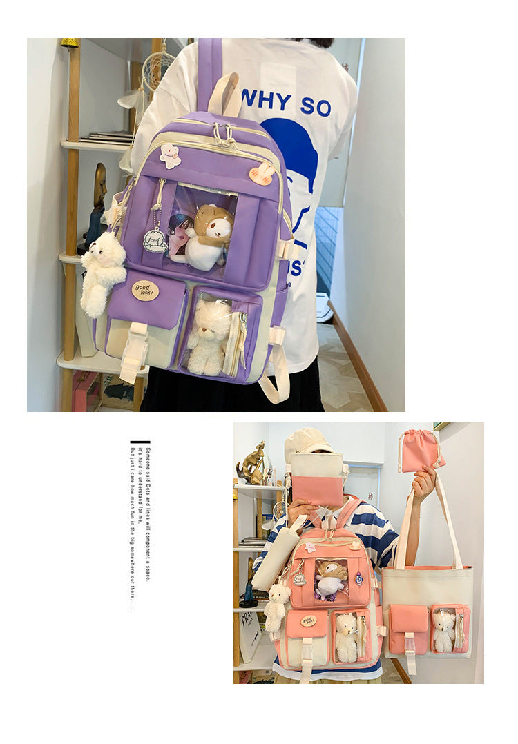 Transform your school routine into a celebration of adorable functionality with our charming bear plush backpack set that proves academic accessories can be both supremely practical and genuinely delightful for middle school fashionistas who appreciate kawaii charm. This isn't just a backpack—it's your complete school style solution that demonstrates how thoughtful design can create something truly special that works beautifully for daily academic adventures while expressing your unique personality. The adorable bear motifs add that perfect touch of sweet sophistication while the premium nylon construction ensures this charming set withstands the demands of busy school days. Whether you're navigating hallways or expressing your personal style, this exceptional set proves that academic functionality and kawaii aesthetics create the perfect partnership for confident student expression.