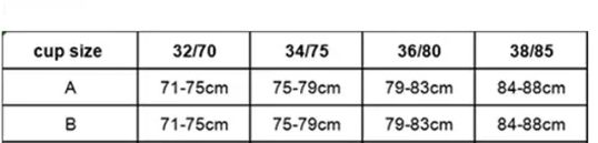 Size Range: 70AB to 85AB with precise sizing to accommodate various body types and ensure optimal fit and comfort.