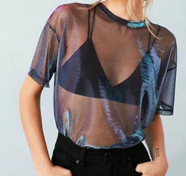 This stunning mesh t-shirt is your perfect piece for feeling effortlessly cool and undeniably chic. The unique perspective design and sophisticated mesh detailing create that perfect balance of casual comfort and trendy edge that makes you feel confident and fashion-forward. It's the kind of top that adds instant style to any outfit while keeping you comfortable and looking absolutely amazing.
