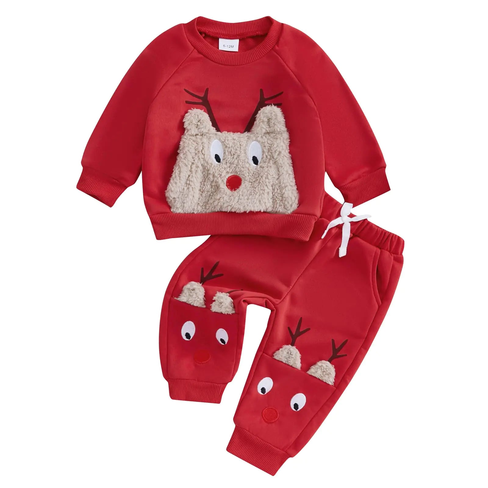 Complete 2-Piece Coordinated Set - Includes printed long sleeve round neck pullover and matching elastic jogger pants for comprehensive holiday styling