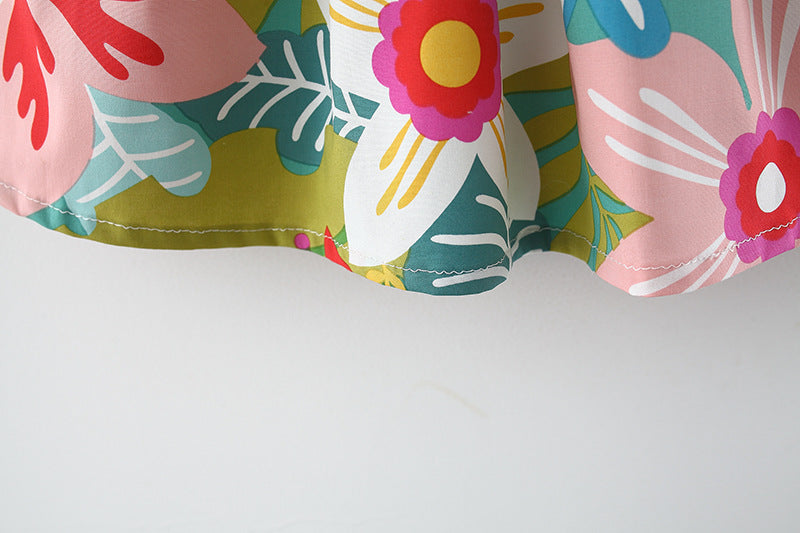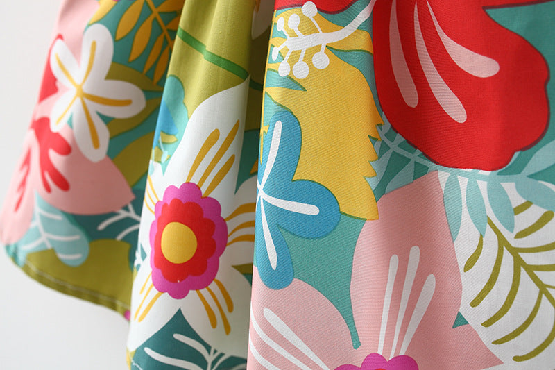 Girls' Small Flower Pattern Cotton Summer Dress