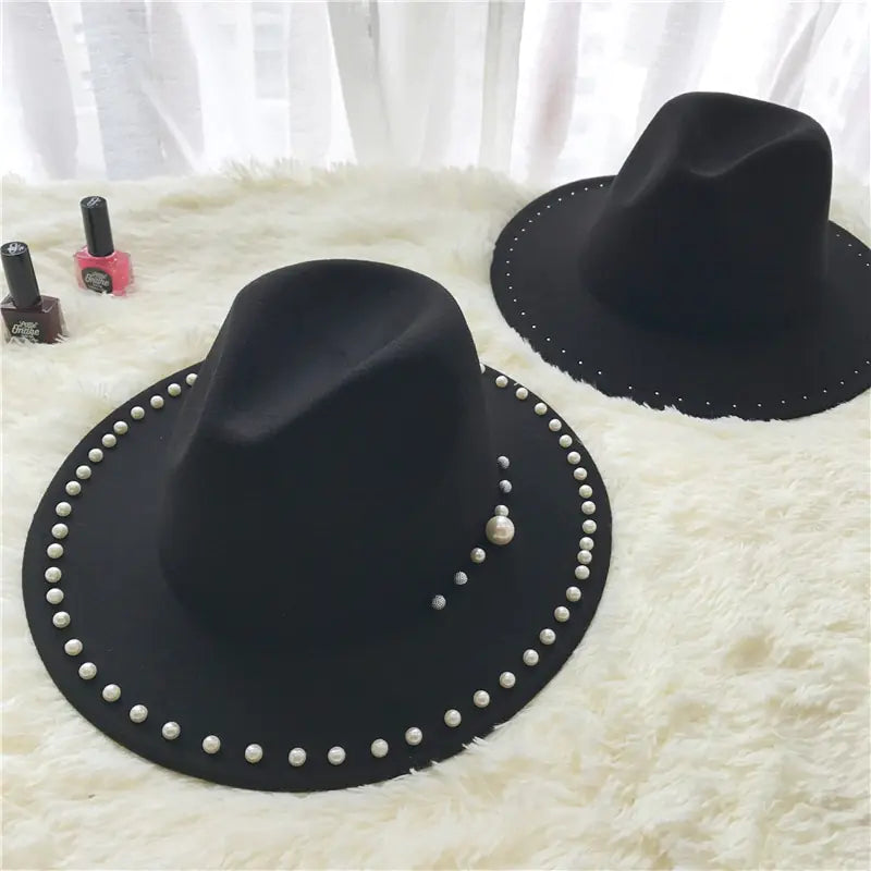Styling Tips Pair with tailored coats and elegant dresses for formal sophistication, or wear with blazers and flowing skirts for refined everyday elegance. The pearl detailing works beautifully with both classic pearl jewelry and modern accessories. Style with vintage-inspired pieces for timeless glamour or contemporary outfits for sophisticated contrast. The wide brim looks stunning with both hair worn in elegant updos and flowing loose styles.