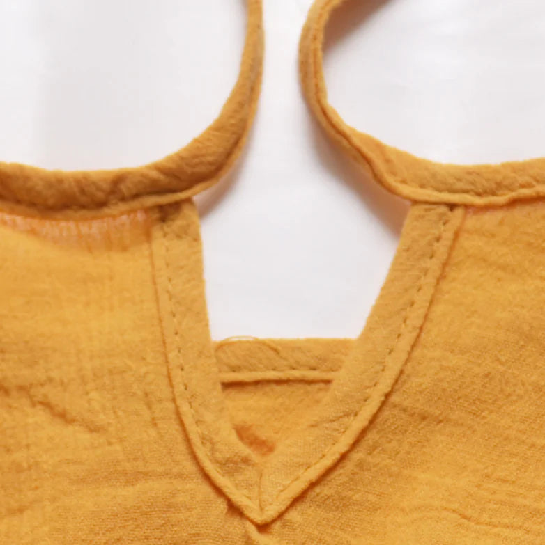 Fit & Comfort The premium cotton construction provides exceptional comfort with its soft, breathable texture that feels wonderful against your skin throughout long days. The wrapped chest design not only creates beautiful visual appeal but also ensures a flattering fit that adapts to your body's natural curves. The U-neck collar is carefully proportioned to be elegant and appropriate for various settings, while the butterfly sleeves provide comfortable coverage without restriction. The slim fit silhouette enhances your shape while allowing natural movement and comfort. The delicate ruffled details are expertly constructed to maintain their beautiful appearance while remaining comfortable against your skin. Available in sizes S through XL, each carefully graded to provide the most flattering fit possible.