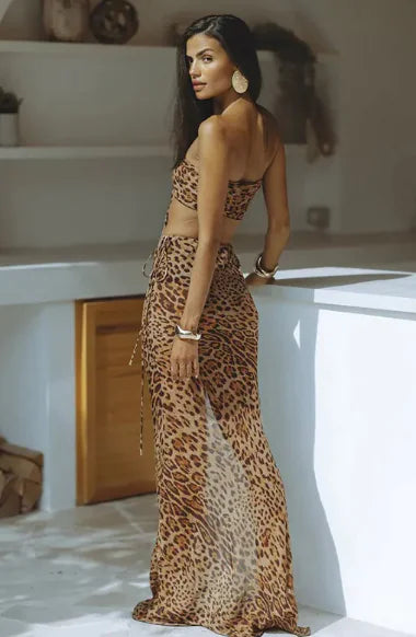Leopard Two-Piece Tube Top & Midi Skirt Set