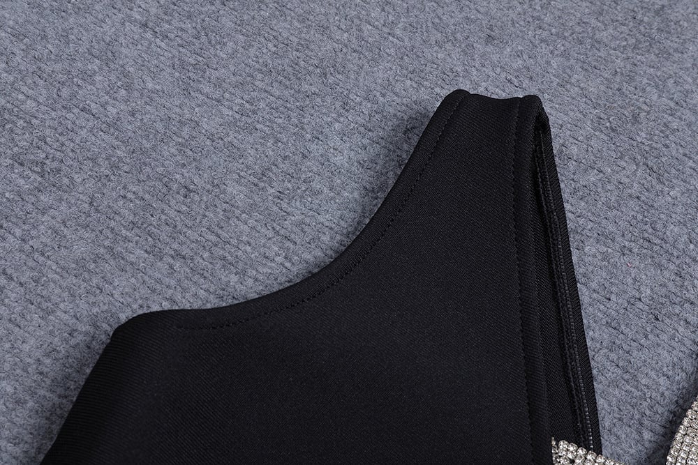 Styling Tips Create maximum glamorous impact by pairing with statement heels and delicate jewelry that complements rather than competes with the rhinestone detailing. The V-neckline works beautifully with layered necklaces or a single elegant pendant that enhances your décolletage. Style with strappy sandals and a clutch for dancing comfort or sky-high heels for dramatic presence. The solid black foundation provides the perfect canvas for both metallic accessories that enhance the sparkle and colorful pieces that add personality and individual flair.