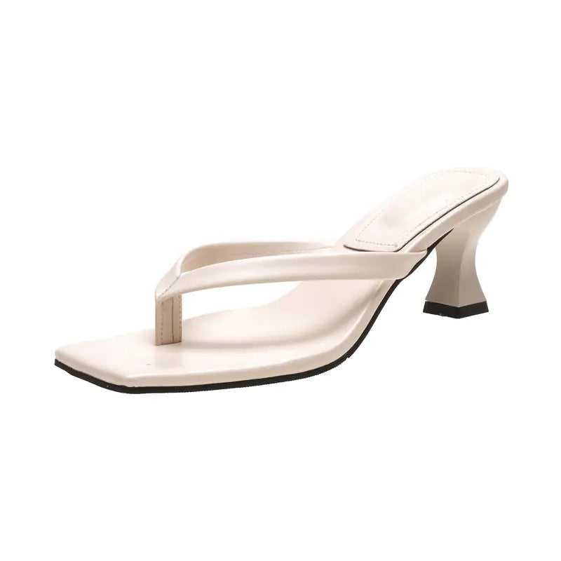 Square-Head Kitten Heel Cow Leather Beach Sandals