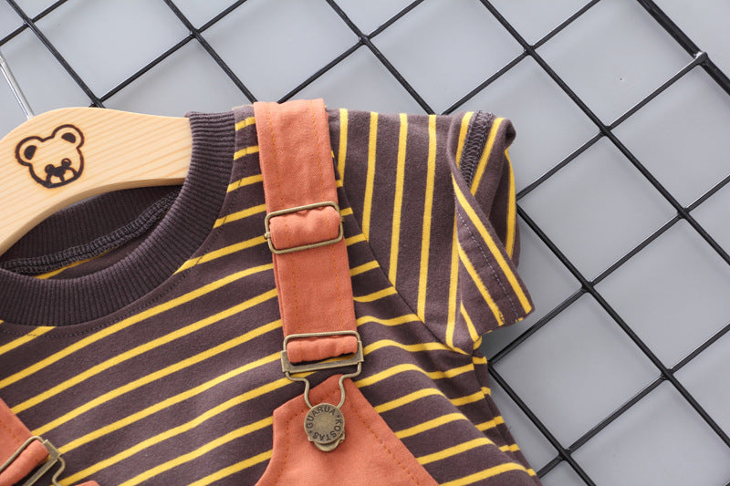 Discover the ultimate in style and comfort for your little one with our trendy denim overalls and short-sleeve T-shirt set. This fashionable outfit is perfect for summer adventures and casual outings, combining practicality with a chic design. Made from high-quality cotton, these overalls are both breathable and durable, ensuring your child stays comfortable all day long while looking absolutely stylish.