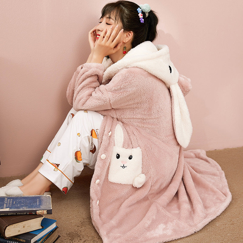Embrace the cozy charm of winter with this absolutely delightful plush coral fleece nightgown that perfectly blends sweet style with unparalleled warmth for those chilly nights. This isn't just ordinary sleepwear – it's your luxurious retreat into comfort, designed to envelop you in cloud-like softness while keeping you wonderfully snug and stylish throughout the entire winter season. Crafted from high-quality polyester fiber, this nightgown offers exceptional warmth and a gentle feel against your skin, making it the perfect addition to your winter wardrobe. The plush coral fleece material creates an indulgent experience that transforms every evening into a cozy escape, ensuring you feel pampered and perfectly at ease as you relax at home.