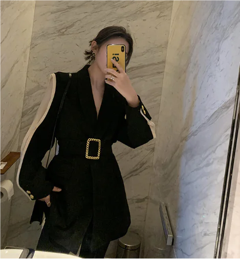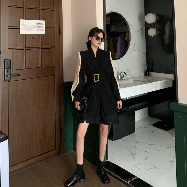 Command attention and exude professional confidence with this impeccably tailored suit that redefines modern executive elegance. The adjustable belted waist creates a customizable, flattering silhouette while the innovative collage splicing technique adds contemporary edge to classic suiting traditions. This isn't just another business suit – it's your power armor that transforms every professional interaction into an opportunity to showcase your sophisticated style and unwavering confidence. The thoughtful design elements and premium construction ensure this suit becomes your go-to choice for making memorable impressions in boardrooms, presentations, and high-stakes professional environments where first impressions matter most.