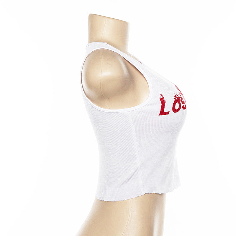 This versatile tank top comes in crisp, clean white that serves as the perfect canvas for the stylish letter print design while offering maximum versatility in your wardrobe. The classic white color ensures this top will coordinate beautifully with any bottoms, accessories, or layering pieces you choose, making it an essential foundation piece that you'll reach for again and again throughout the summer season and beyond.